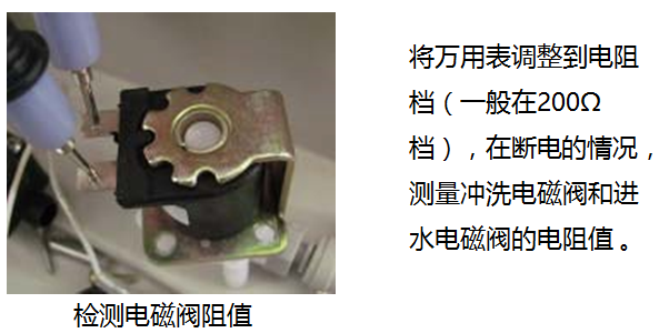 5.進(jìn)水電磁閥和沖洗電磁閥的測(cè)量與判定方法