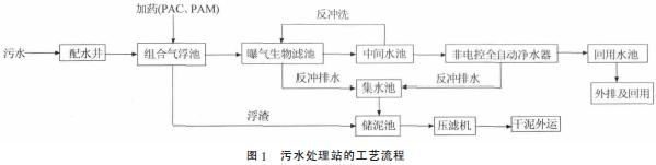 處理過程中產(chǎn)生的污泥主要包括斜管沉淀池污泥和淺層氣浮剩余污泥。污泥泵入污泥濃縮池進(jìn)行濃縮,濃縮污泥脫水后外運(yùn)處理。脫水機(jī)房產(chǎn)生的污泥過濾液和反沖洗水收集于脫水機(jī)底部集水槽中,可以通過管路連接自流入集水池,重新處理。