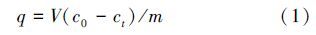 式中,q為磷吸附量(mg · g-1),V為磷溶液體積(L),c0和ct分別為溶液初始和t時刻磷濃度(mg · L-1),平衡時ct即為ce, m為吸附劑投加量(g).
