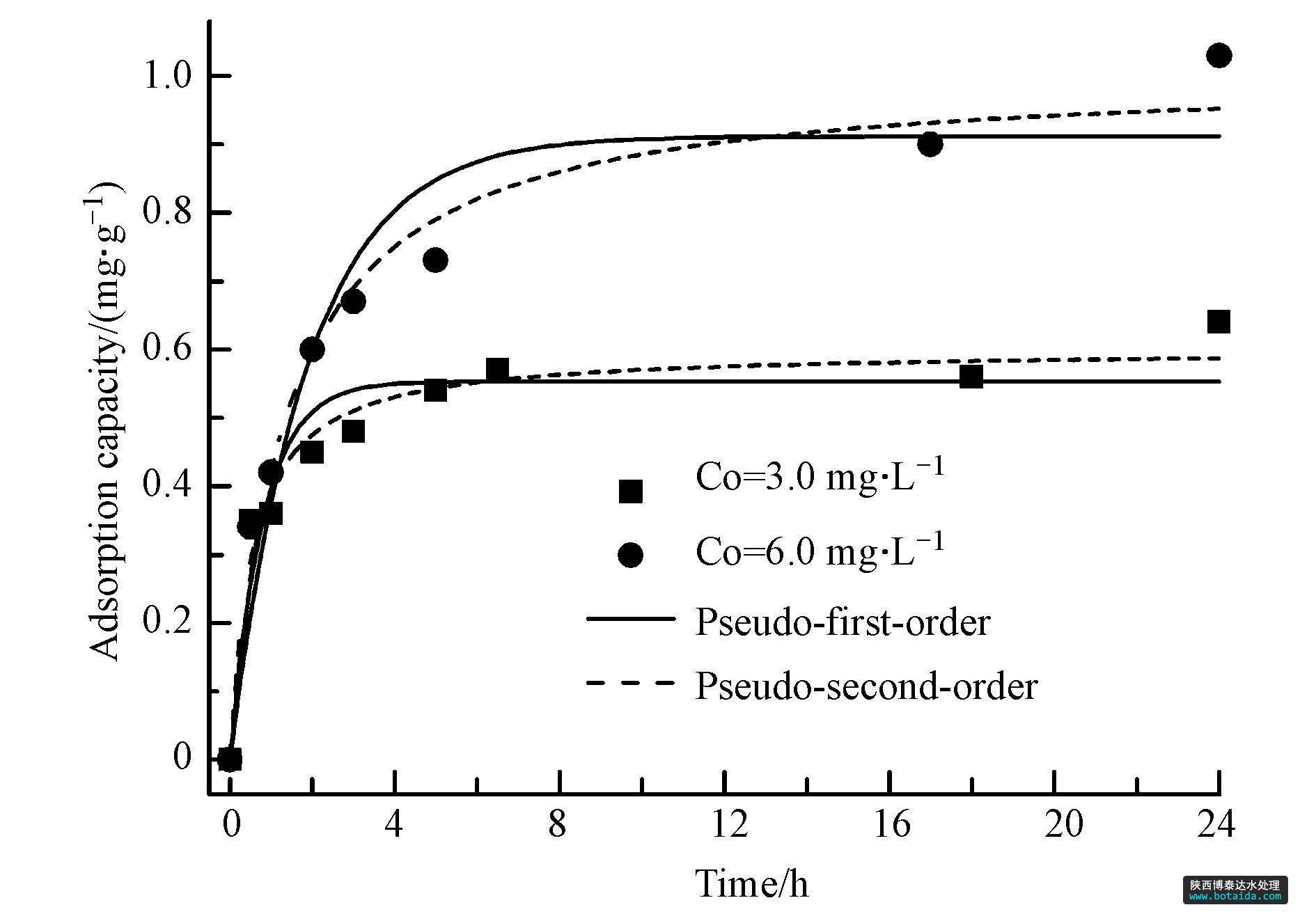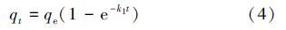 準一級動力學模型基于假定吸附受擴散步驟控制,吸附速率正比于平衡吸附量與t時刻吸附量的差值,其速率方程為: