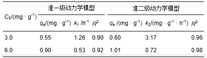 式中,qt和qe分別為t時刻和平衡態(tài)時的吸附量(mg · g-1),k1為準一級吸附速率常數(h-1),k2為準二級吸附速率常數(g · mg-1 · h-1).