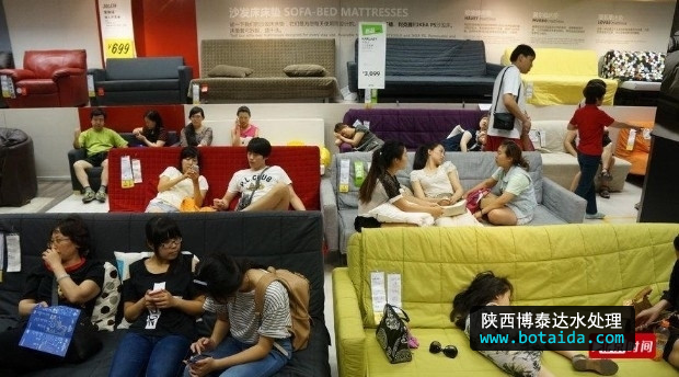 2013年07月28日,北京,當(dāng)天北京再次迎來(lái)一個(gè)35度以上的高溫天氣,為了躲避酷暑很多老百姓選擇了到有空調(diào)的大型商場(chǎng)去購(gòu)物,餐飲和避暑。宜家家居客廳區(qū)沙發(fā)成了搶手貨。