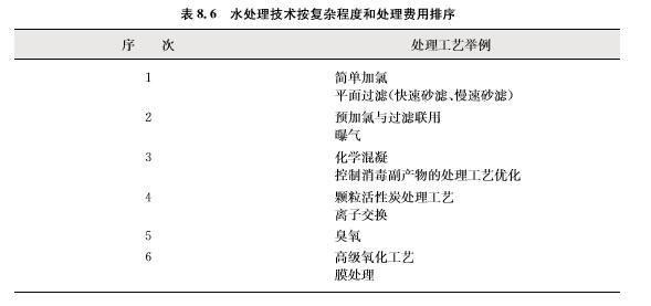 ?        不同水處理工藝按其復(fù)雜程度和處理費(fèi)用的定性排序如表8.6所示,次序越高,工藝或 運(yùn)營越復(fù)雜。