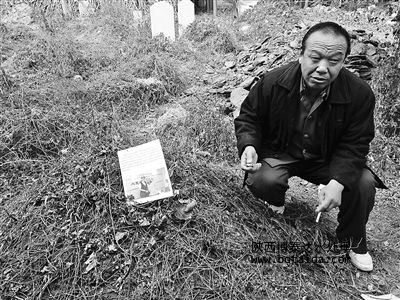 (請大家細看圖片,圖片是一個男人坐在一個墳頭,這就是這段時間鬧得沸沸揚揚的一件事,大家看下面文章)