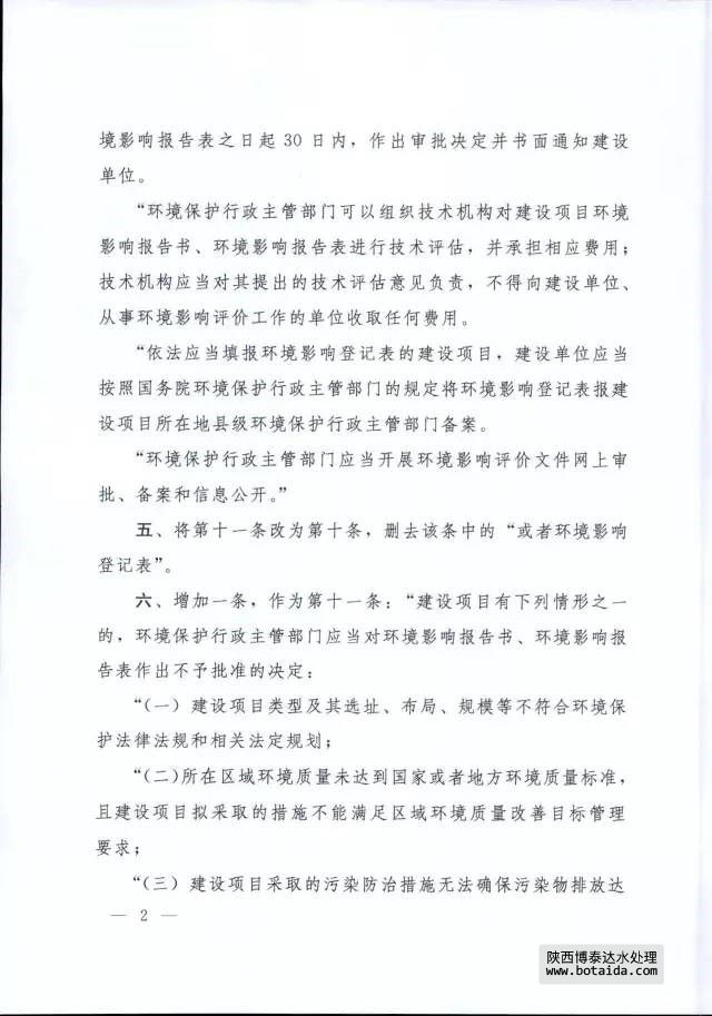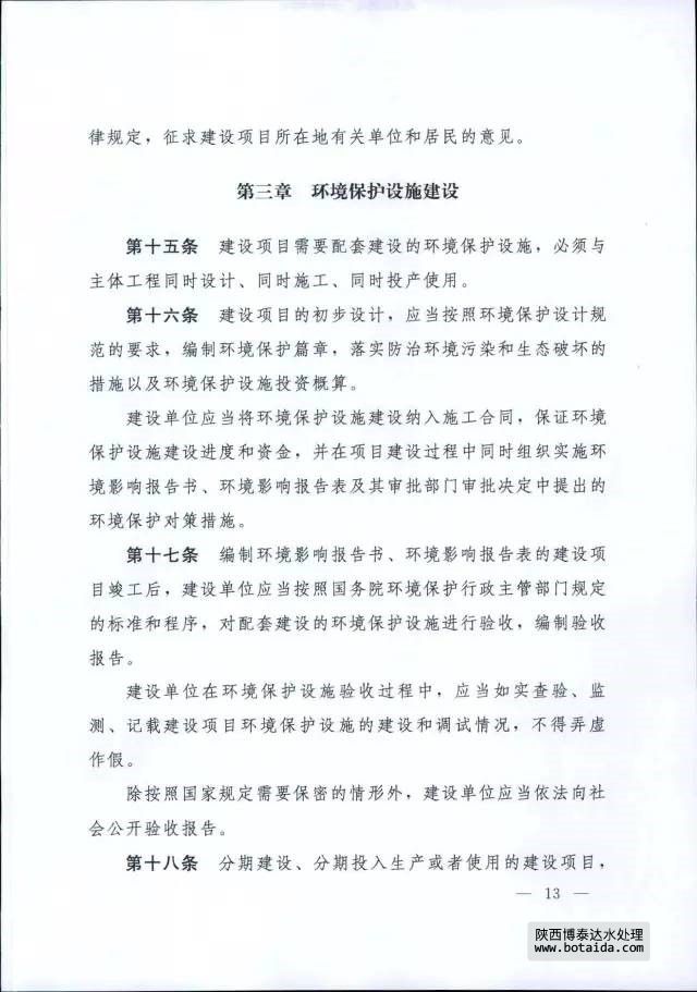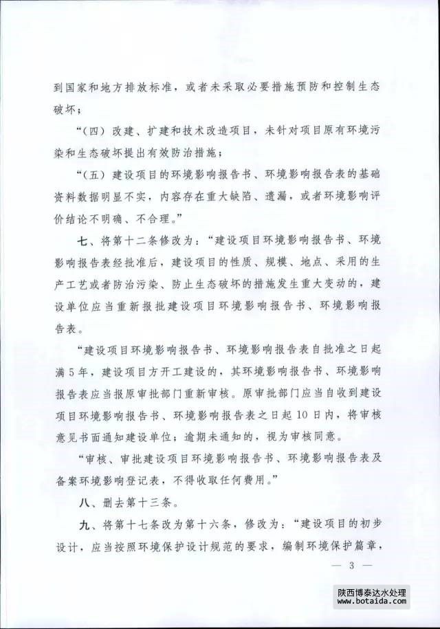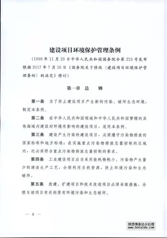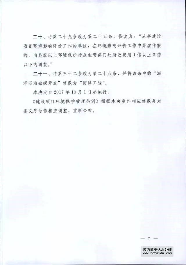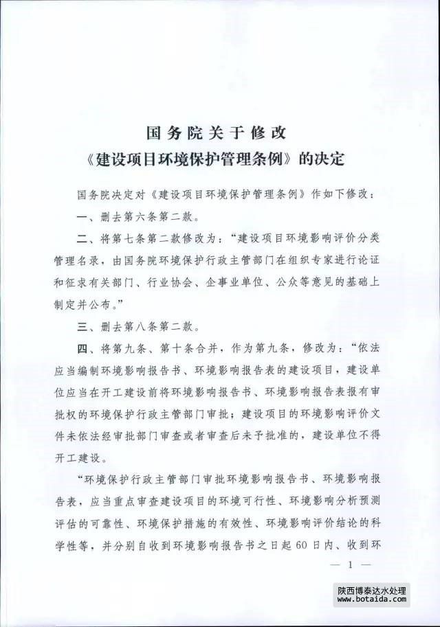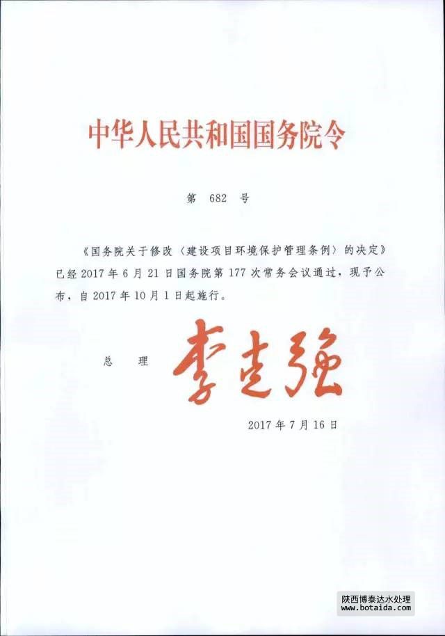 7月16日,國務(wù)院以國務(wù)院第682號令公布了《國務(wù)院關(guān)于修改〈建設(shè)項(xiàng)目環(huán)境保護(hù)管理?xiàng)l例〉的決定》,自2017年10月1日起施行。