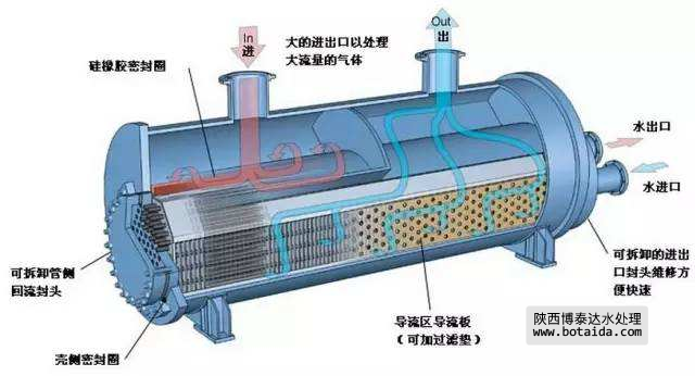 ② U形管式換熱器:它只有一塊管板,因此管子在受熱或冷卻時(shí),可以自由伸縮。這種換熱器的結(jié)構(gòu)簡(jiǎn)單,但制造彎管的工作量較大,且由于管子需要有一定的彎曲半徑,管板的利用率較差,管內(nèi)進(jìn)行機(jī)械清洗困難,拆換管子也不容易,因此要求通過管內(nèi)的流體是清潔的。這種換熱器可用于溫差變化大,高溫或高壓的場(chǎng)合。