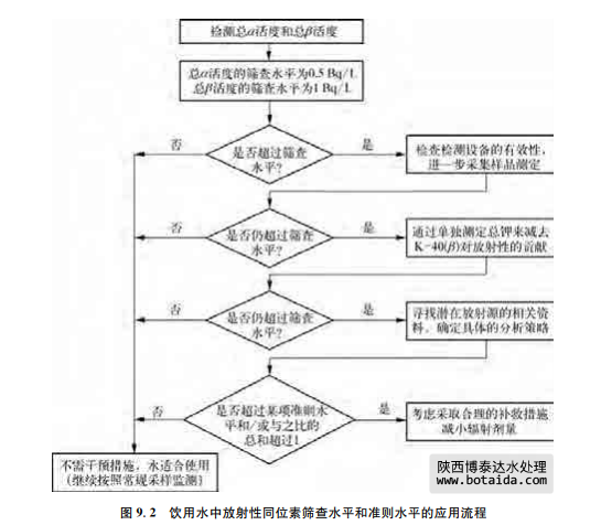 在本準(zhǔn)則的第二版中,根據(jù)總α活度和總β活度的篩查水平分別為0.1Bq/L和1Bq/L 確定了IDC為0.1mSv/年。這個(gè)IDC表示,自然放射源對(duì)年平均放射劑量貢獻(xiàn)不超過(guò)5% (見(jiàn)9.1節(jié))。事實(shí)上,后續(xù)的經(jīng)驗(yàn)證明,如果總α活度低于或等于0.5Bq/L,那么總放射劑 量也通常不會(huì)超過(guò)0.1mSv/年。因此在第三版準(zhǔn)則中,犐犇犆基于總α活度和總β活度的篩 查水平分別為0.5Bq/L和1Bq/L,在本版準(zhǔn)則中,依舊沿用這一改變。