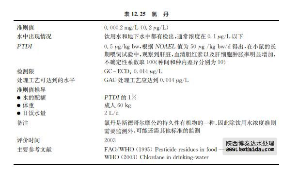 氯丹(CASNo.57 47 9)自1947年開始使用,是一種廣譜殺蟲劑(見表12.25)。目 前,許多國家已經(jīng)開始嚴(yán)格限制氯丹的使用,現(xiàn)僅通過液下噴射的方式用于殺除土壤中的白 蟻。經(jīng)液下噴射使用時(shí),氯丹會成為地下水污染的潛在污染源,但濃度較低。氯丹工業(yè)品是 混合物,主要由順式和反式氯丹組成。氯丹不易自然降解,在土壤中不易遷移也不易進(jìn)入地 下水(僅少量檢出)。氯胺易散失進(jìn)入大氣。雖然食物中所含氯胺的濃度水平一直在降低, 但氯胺具有持久性和較強(qiáng)的生物累積可能。