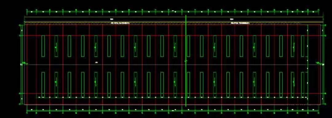 舊熟料堆棚長約 165.5,寬 45 米,高 12 米的料倉。沿兩邊立柱上方跨梁噴設(shè),跨梁共計數(shù)量 24 個、鋪設(shè) 23 個,共計長度約 1035 米。
