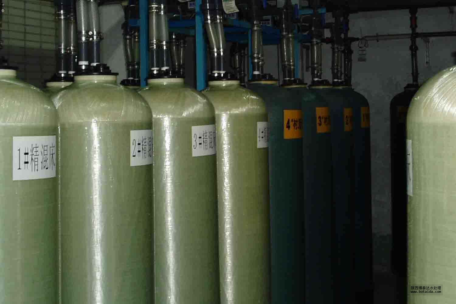拋光混床凈水設(shè)混床,是將陰陽樹脂按一定比例裝置填在同一交換器中,運行前將它他混合均勻。此時被處理水在通過混合離子交換床后,所產(chǎn)生的氫離子和氫氧根離子立即生成溶解度很低的水,很少形成陽離子或陰離子交換時的反離子??梢允菇粨Q反應進行很徹底,故水質(zhì)好,所以混合床串聯(lián)在反滲透或一級復床除鹽系統(tǒng)后面,用于純水或高純水的制備?;齑卜譃閱?、雙床、拋光床、雙床可一用一備;可串聯(lián)使用,以提高產(chǎn)水水質(zhì),有效利用樹脂的交換容量;當生產(chǎn)用水量大時,可并聯(lián)使用,運行相當靈活、方便。